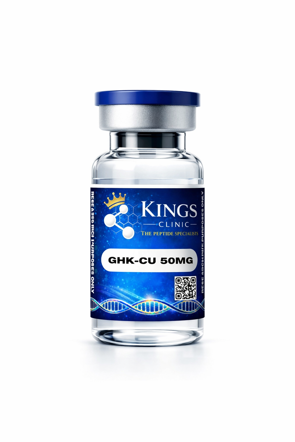 High-purity GHK-Cu (Copper Tripeptide-1) supplied by Kings Clinic strictly for laboratory research purposes only.